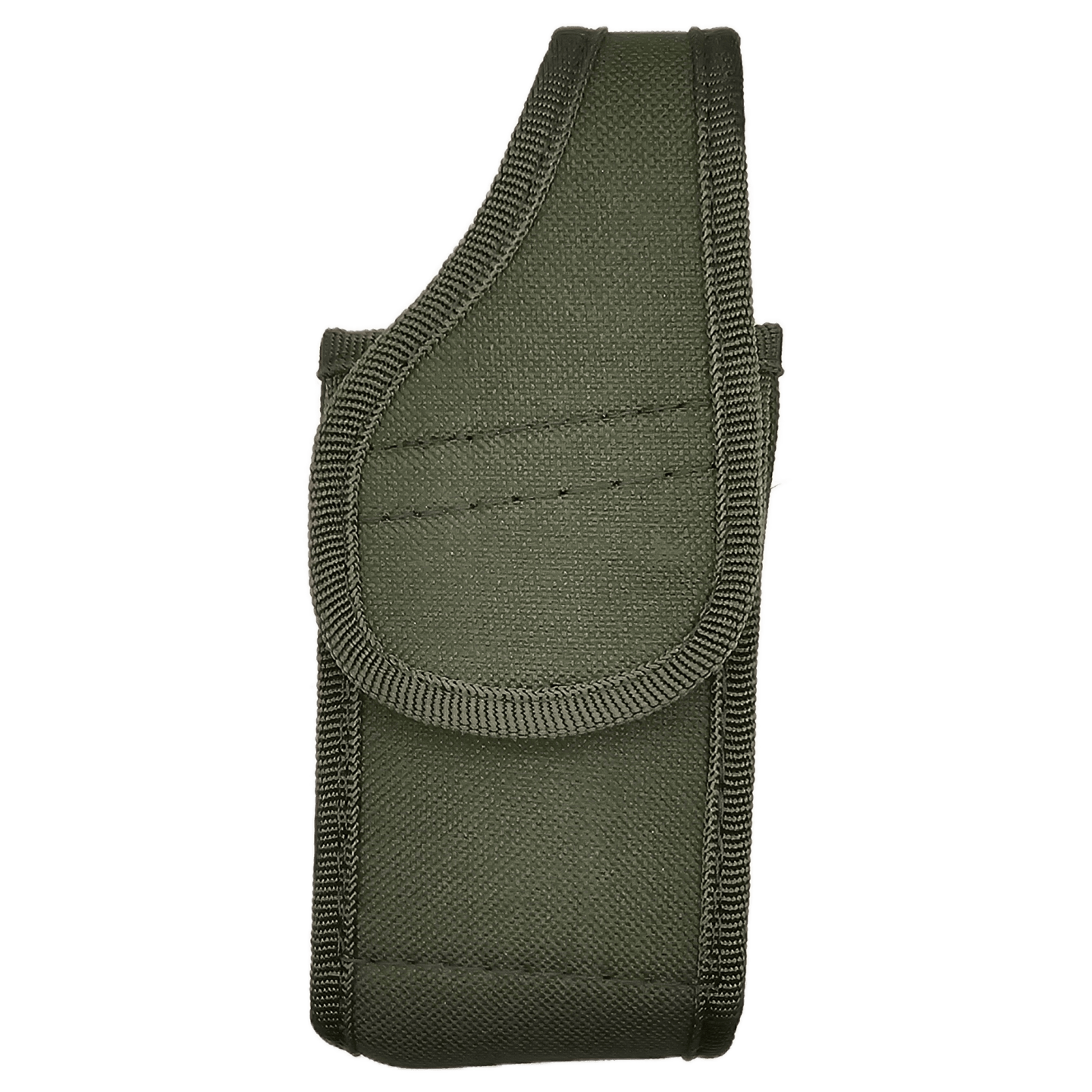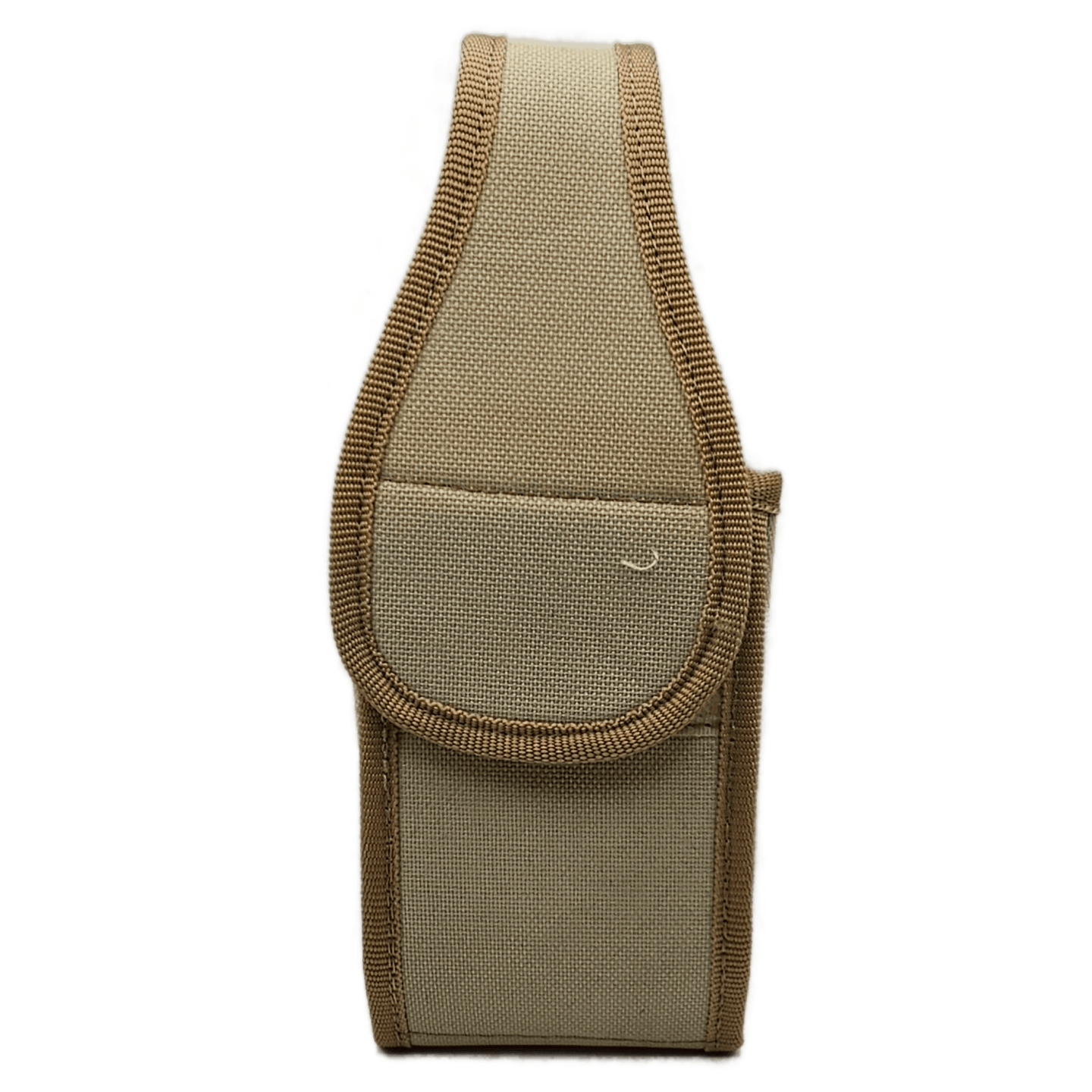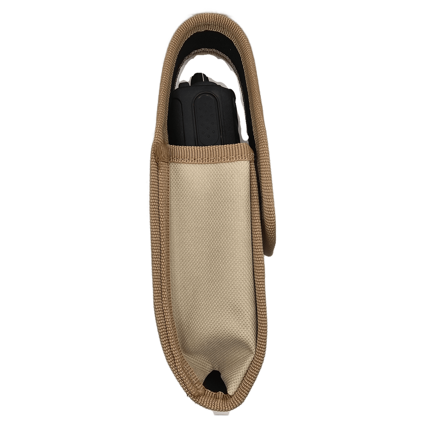 Con una cinta de poliester en el contorno de refuerzo, en la parte trasera trae abertura para el ajuste a cinturon o fajilla, es ideal para radios o celulares grandes
